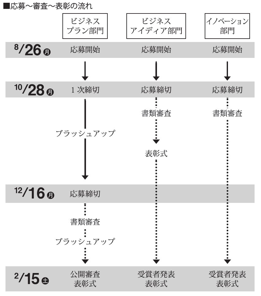 - 応募者は原則として公開審査会、表彰式に参加します。
