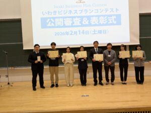 いわきビジネスプランコンテストの公開審査が開催され、6人の起業家がそれぞれのビジネスプランを熱くプレゼンしました。結果は下記の通りとなります。